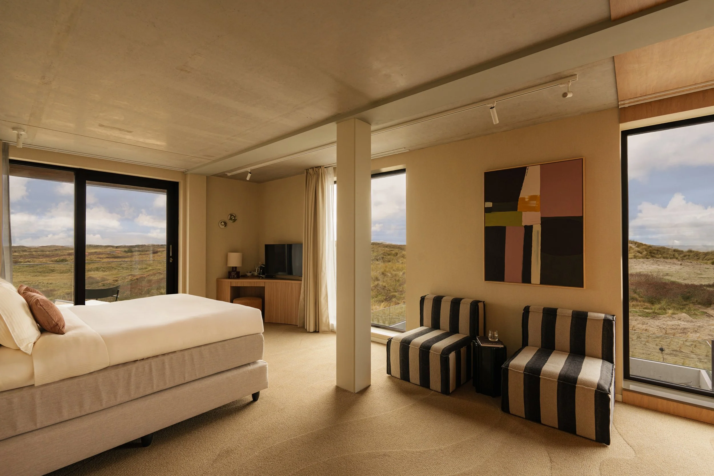 Elk detail is zorgvuldig uitgekozen. Van handgemaakte kunstobjecten tot functionele boothaken, alles draagt bij aan een ingetogen luxe die het buitenleven naar binnen haalt. Zo komen architectuur, natuur en interieurdesign samen in een harmonieus geheel dat hotelgasten een unieke ervaring biedt.
